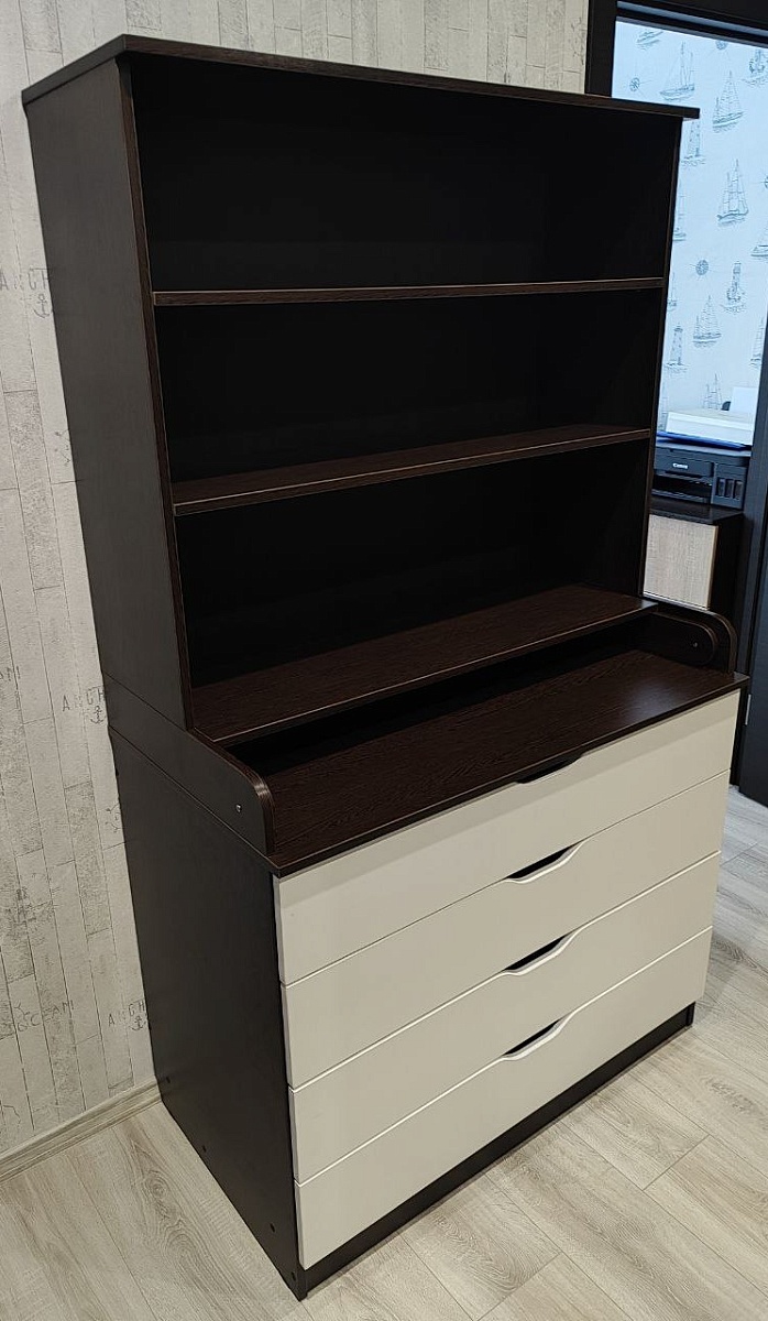 Заказ 00000252127, Угловой письменный стол для двоих Канзас 34 BMSЗаказывали этот стол для детской комнаты. Искали именно угловую модель, чтобы у каждого ребёнка было свое рабочее место. По ширине стол идеально вписался в размеры комнаты.Плюсы:Длина столешницы более 1,7 метра . Это очень удобно. Дети не мешают друг другу, свободно размещают учебники, канцелярию, у каждого теперь своя полка и по два отдельных ящика. Конфликтов из-за места теперь нет + в комнате стало легко поддерживать порядок.Качество сборки и материалы. Стол приехал в надежной упаковке, все детали были целы. Собирали по инструкции, процесс стандартный. Фасад тумб и столешница выглядят аккуратно, заявленного цвета «венге/дуб сонома».Угловая форма позволяет каждому сидеть в удобном положении.Отличное соотношение цены и качества.Недостаток: качество кромки на столешнице. Этот недостаток легко устраняется покупкой кромки на маркетплейсе за копейки. Запах ДСП держится какое-то время, но со временем проходит.Итог: Стол «Канзас-34» — нам идеально подошёл. Комфортно, уютно, удобно и со вкусом. Рекомендую.