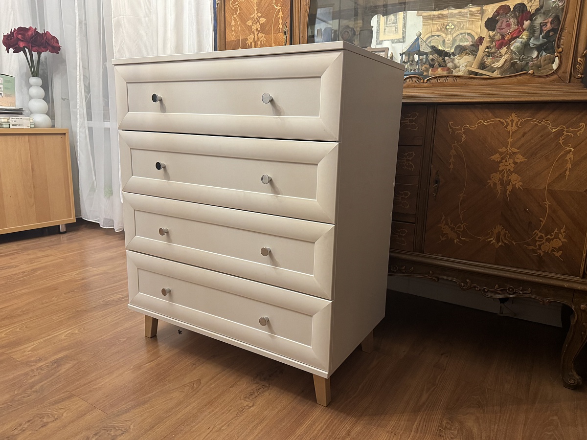 Комод качественный, дсп плотное, кромки приклеены хорошо. Вид вполне красивый, очень удобно, что можно задать свои размеры, а так же заменить направляющие (поставил GTV польские). Из минусов могу сказать что нужна более подробная инструкция (хотя интерактивная версия нормальна). И элементы креплений (гвозди, винты, саморезы) можно разделить на несколько пакетов.