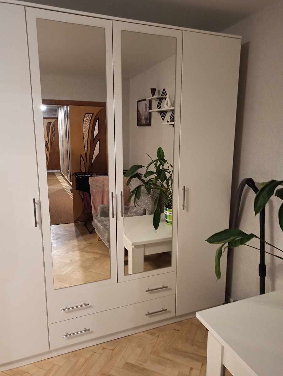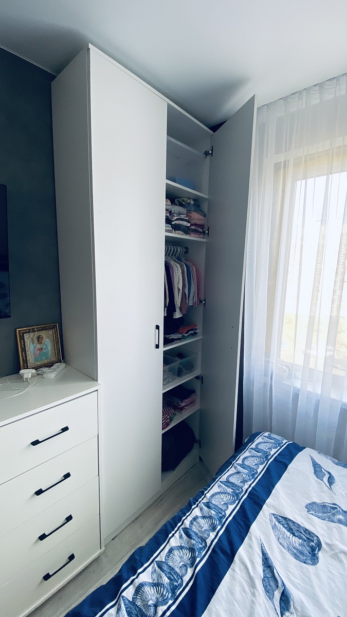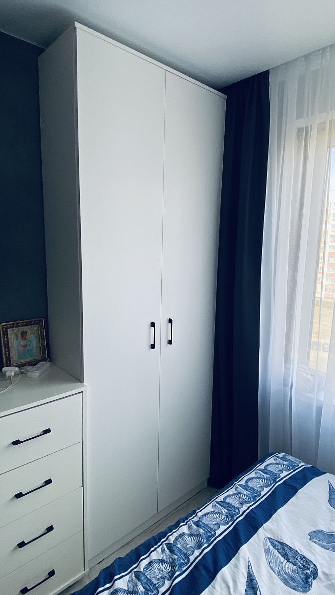 Номер заказа 1212518 Шкаф распашной Арт 4 BMSСделали шкаф под свои размеры 900/350/2400, изготовили за 10 дней, доставка 2 дня.Шкаф пришел целый, собирается легко. При сборке обнаружили что на одной двери отметки для петель не совпадают.Немного изменили положение полок под себя ,добавили штангу и ручки.Шкаф смотрится стильно и дорого, шкафом остались довольны