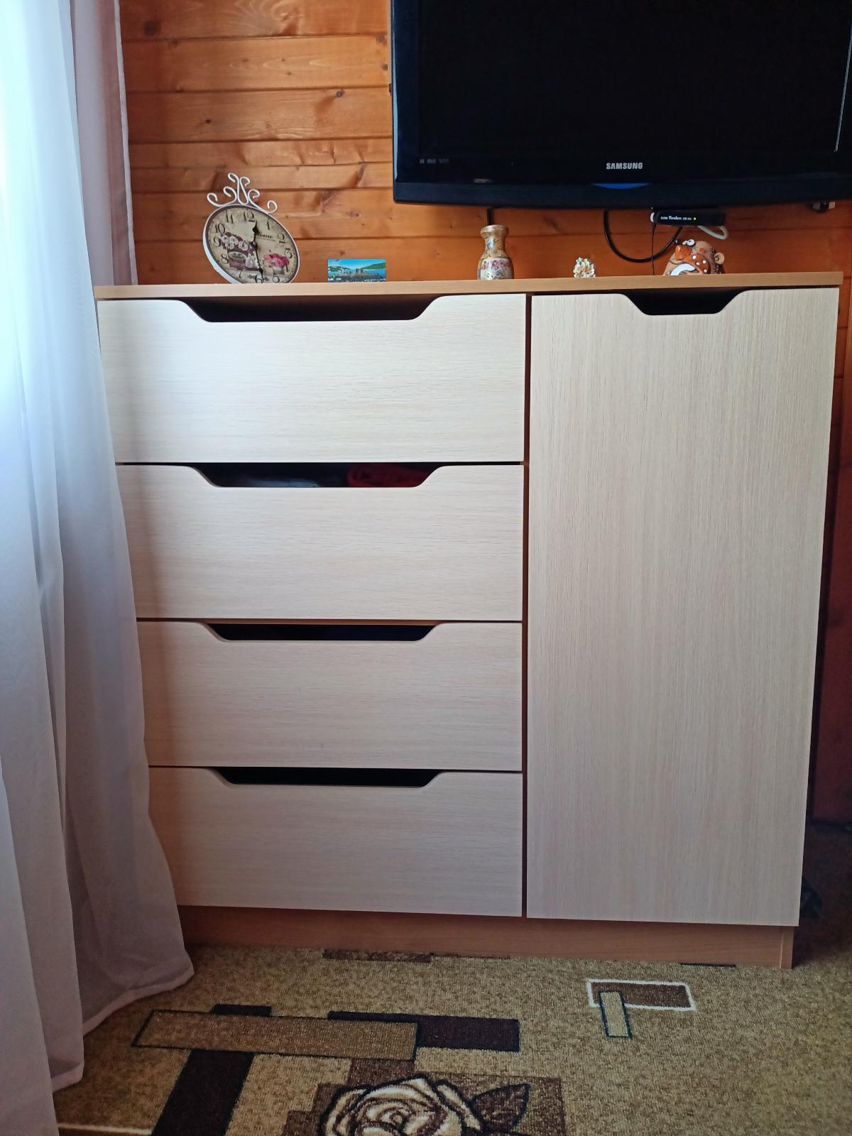 Заказывали комод по индивидуальным размерам,остались очень довольны.Хороший вместительный комод, качество отличное,быстрая и бесплатная доставка,сборка точно по инструкции.Спасибо магазину.