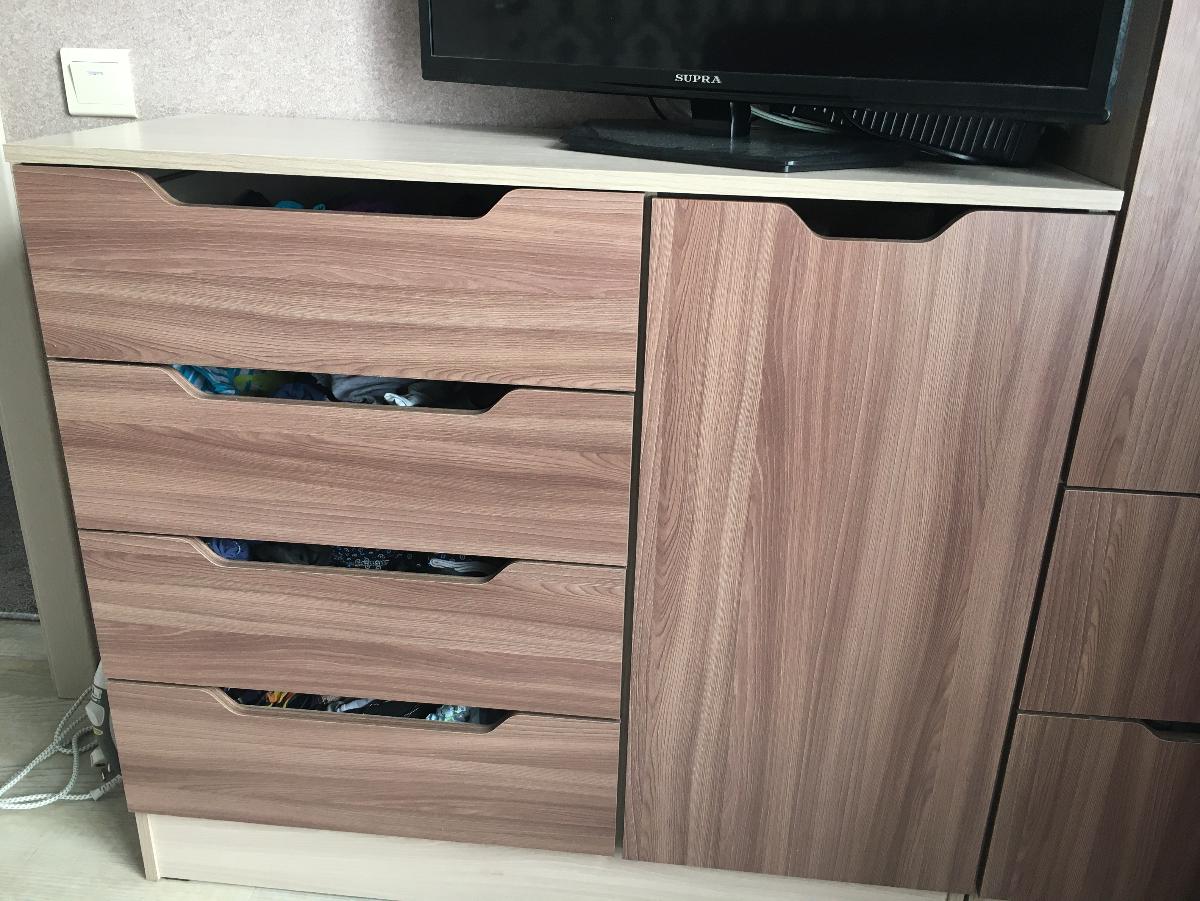 Нужен был комод именно с ящиками и дверью( полками). И заказала этот. Очень удобно, что можно выбрать сразу и цвет, и размер. Можно потерять много времени в поисках нужного цвета и размера на других сайтах, но гораздо удобнее сразу зайти в этот магазин, ввести свои параметры и готово!!! Доставка быстрая ( от 1 до 3 дней) и БЕСПЛАТНАЯ, что тоже очень радует, поэтому и заказываю тут уже 10 раз разную мебель. Шкаф понравился, как и вся остальная мебель, которую тут заказывала. Качество хорошее, собирать быстро, есть схема. Вот, что вышло по моим параметрам: цвет ясень шимо светлый и ясень шимо тёмный ( у меня вся мебель этого цвета в спальне, получился комплект), вписался отлично. Вот из чего состоит мой комплект( (Зодиак 1.2+А Шкаф распашной BMS и Тумба прикроватная Амалия BMS). Возможно, кому-то это понадобится)))) Я всем довольна. Мне звонил менеджер, и я внесла свои пожелания по размерам полок, ящиков. Спасибо магазину.