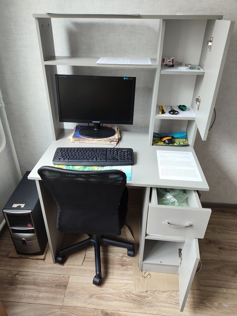 Заказывала рабочее место: Заказ 00000460591, изделие Тумба ТС 06-01 BMS (390х630х540) + Заказ 00000460592, изделие Стол компьютерный Myau СКМ-12 BMS (820х750х600) + Заказ 00000460590, изделие Шкаф Эконом 7 BMS (300х2300х550). Получилось достаточно бюджетно и абсолютно по моим размерам плюс есть возможность подобрать "свой" цвет из большого количества вариантов и фурнитуру. Из недостатков могу отметить необычайно острые углы у мебели, но продавец сразу предлагает накладки на углы, за что спасибо