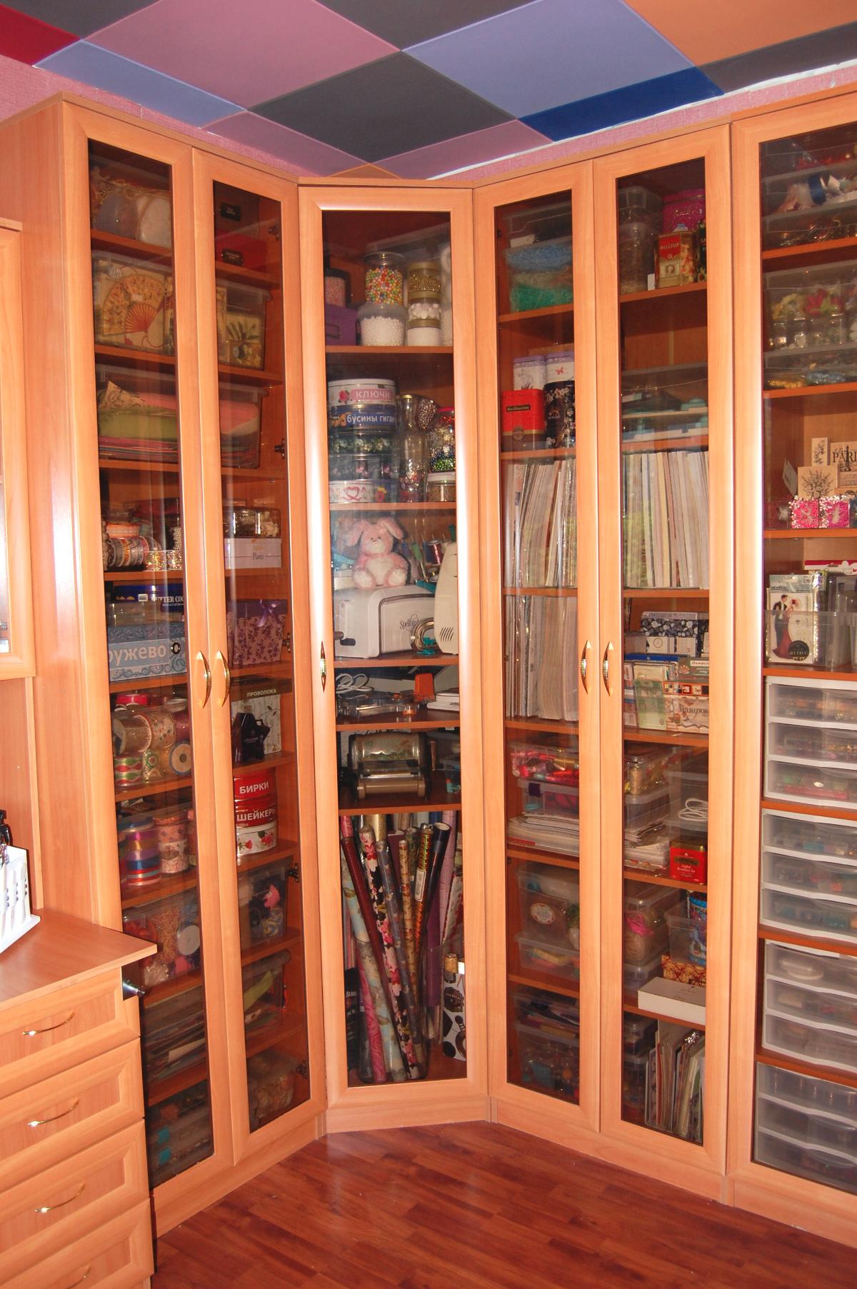 Шкаф очень удобный, красивый и вместительный. Покупала для домашнего кабинета-мастерской. Полки разместила по своему усмотрению, под каждые предметы индивидуально.