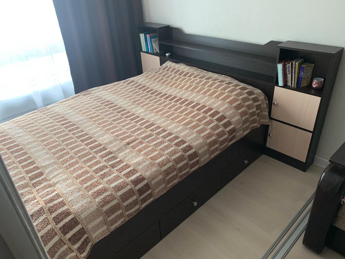 Очень доволен покупкой данной кровати! Интересовала модель с дополнительными местами для хранения. 6 выдвижных ящиков, полки по бокам и у изголовья полностью удовлетворили наш запрос. Размер нам сделали точно такой, как запрашивали. Считаю это весомым плюсом! Собирал сам, в две руки). Попотел основательно, но в результате все получилось.Светлые фасады докупали уже позже, и в таком виде мы еще больше любим нашу кровать.Рекомендую!!!Заказ 00000580945 (398257)