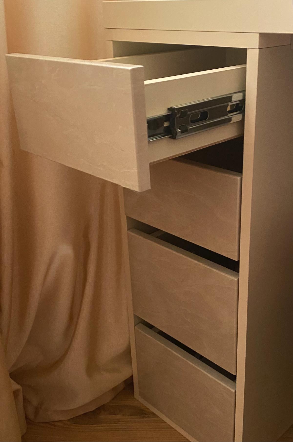 Очень милый стол!) Удобный, не массивный, ну прямо такой, как мы хотели. Эскиз нам переделывали до тех пор, пока нам все не понравилось. Есть возможность менять абсолютно все: цвет, материал, размеры, фурнитуру. Собирал сам, все очень просто. Не первый раз заказываю мебель здесь. Спасибо! Буду рекомендовать.