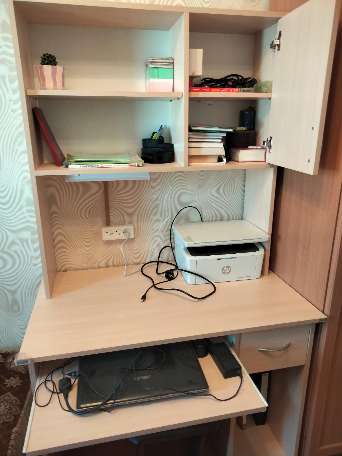 Очень удобный стол. Не занимает много места, вместился в небольшое пространство. Брали для дочери школьницы. Всё устроило.