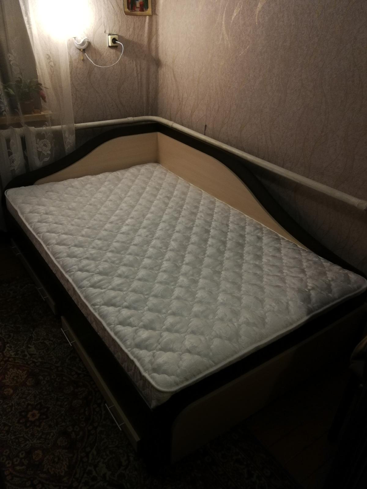 Красивая, удобная кровать, особенно радует боковая спинка, где стоит кровать вдоль стены протянуть трубы отопления, вследствие чего проваливаешься в расстояние между кроватью и стеной, приходилось раньше набивать одеялами. Теперь просто здорово, все цевилизовано. Кровать кажется прочной, матрас 17 см визуально делает кровать наравне с диваном, боковины кровати спального места не упирается в ноги, не садишься на них не больно ноги. Кровать прошла тестирование прыганием на ней детей:)