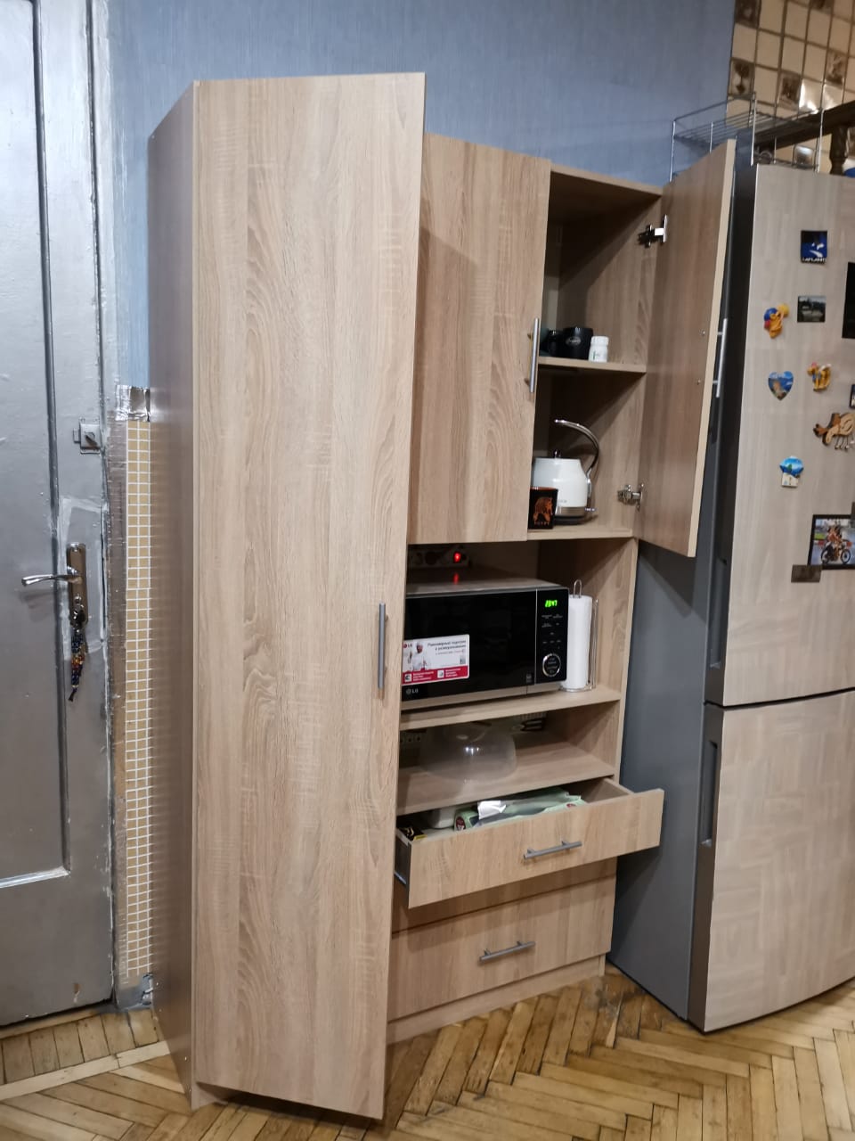 Это не первый мой заказ в этом интернет-магазине. Когда появилась необходимость приобрести для кухни шкаф нижний с 4-мя ящиками, даже вопроса не возникло, где именно его заказать. Шкаф нижний (тумба) с 4-мя выдвижными ящиками Виктор BMS, эскиз №00000525042, был изготовлен по моим собственным размерам и с выбором необходимой мне цветовой гаммы, а также рельефом, подобранным под рельефы фасадов моей кухонной мебели.Заказ разместила на сайте. Очень быстро перезвонила менеджер, уточнила данные, подтвердила заказ и обозначила день доставки. Шкаф привезли в точно обозначенное время. Все комплектующие в наличии. Когда шкаф был собран, вся семья была очень довольна. Все в точности, как было заказано. Белый глянец сверкает. Все отверстия совпадают, поэтому нигде ничего не пришлось подгонять, ящики отлично выдвигаются и задвигаются. Шкаф точно встал под столешницу, куда и планировалось его разместить.Отличный шкаф. Когда появится необходимость, я снова буду заказывать мебель здесь.