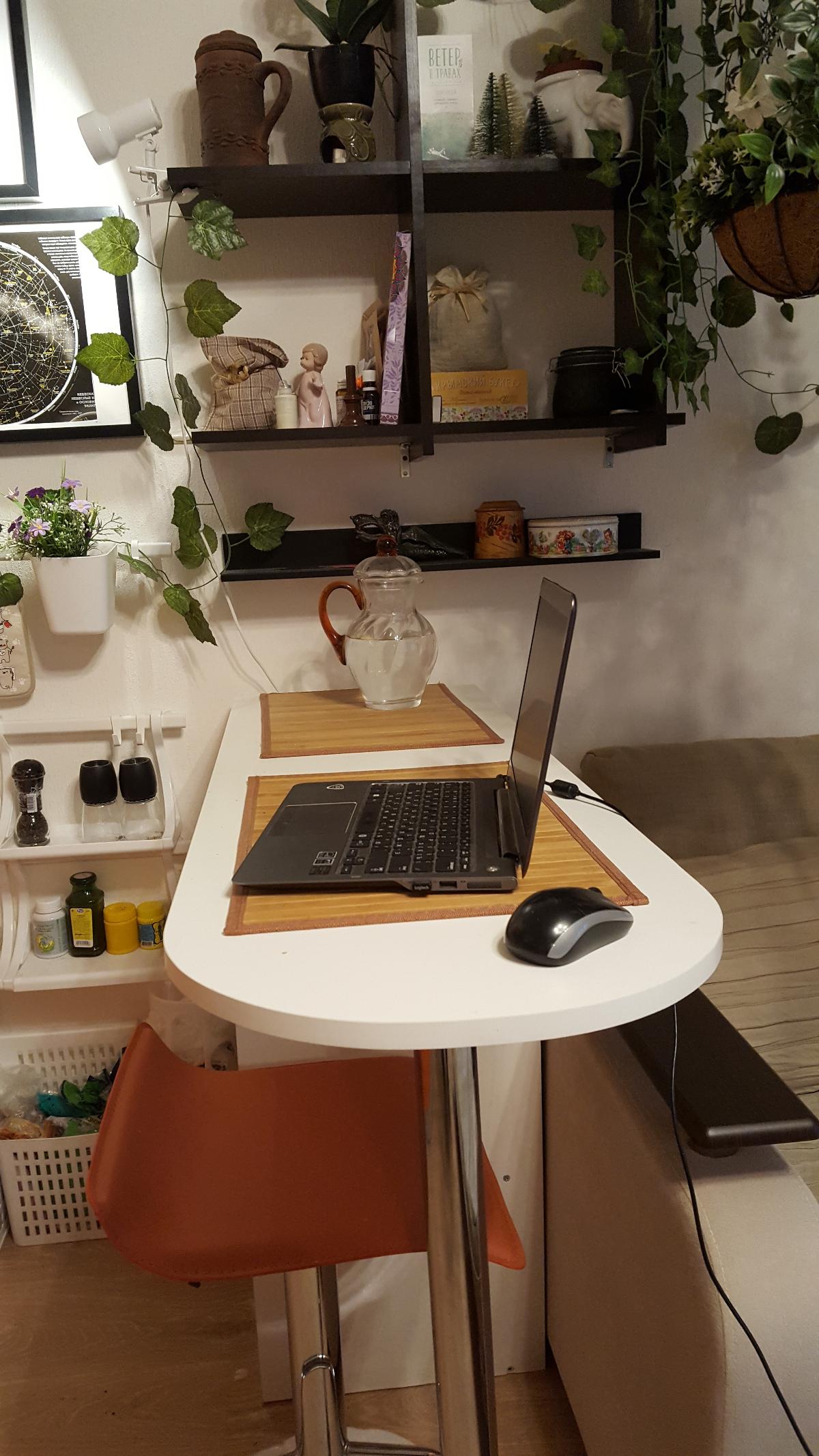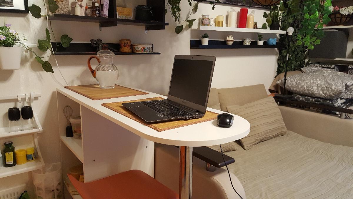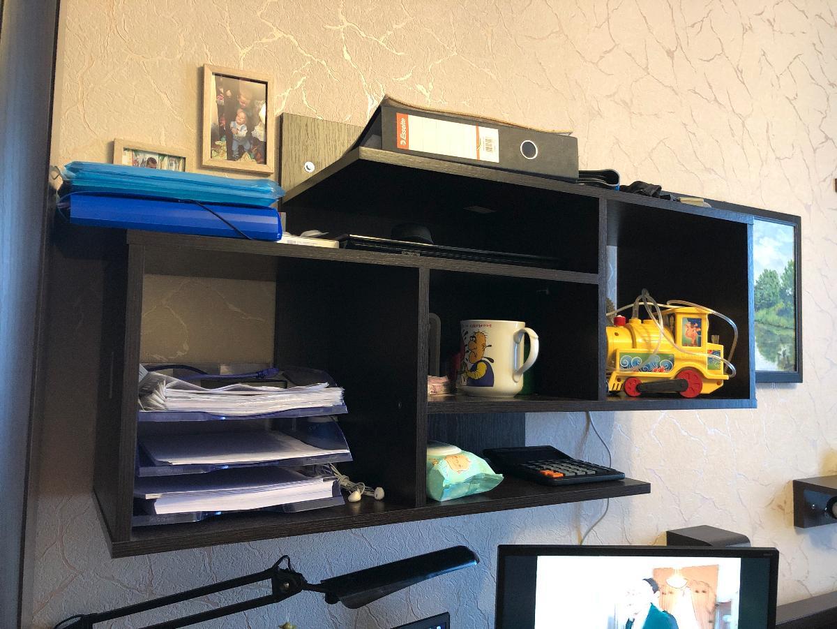 Очень довольны столом. Много ящиков, полочек. Есть место для всех книг, тетрадей и личных вещей. Единственное, что не совсем продумано, так это полочки по бокам. Для книг недостаточная высота. Либо сделать там одну полочку, или изменить размеры под книги. У нас пока учебники лежат, а не стоят. Муж сам отрегулирует размеры. Просто для будущих заказов обратите внимание на этот нюанс.