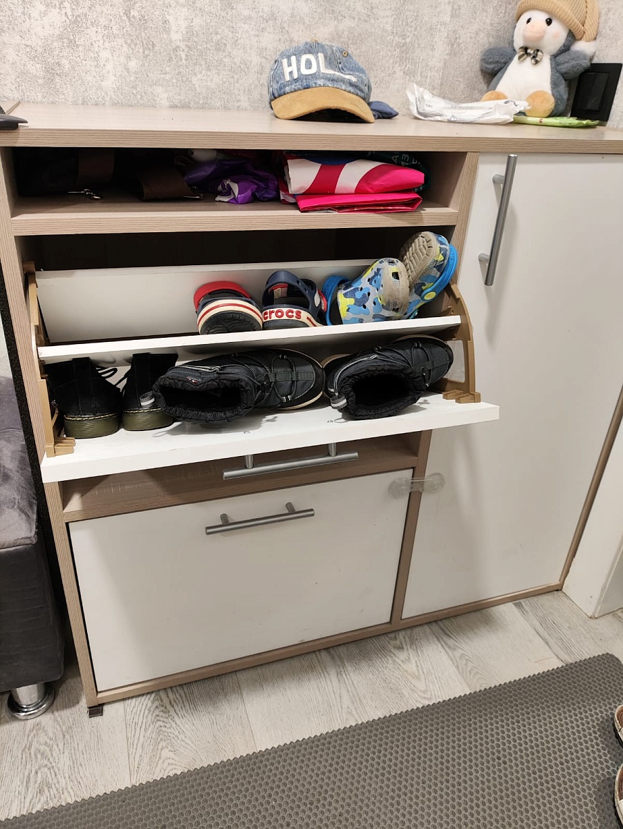 Заказ 00000128706 Обувницу заказывала по индивидуальным размерам вместе со шкафом в одной цветовой гамме и они отлично подошли по размерам и сочетаются между собой. Доставка быстрая. Собирали самостоятельно по прилагаемой схеме. Всё устраивает