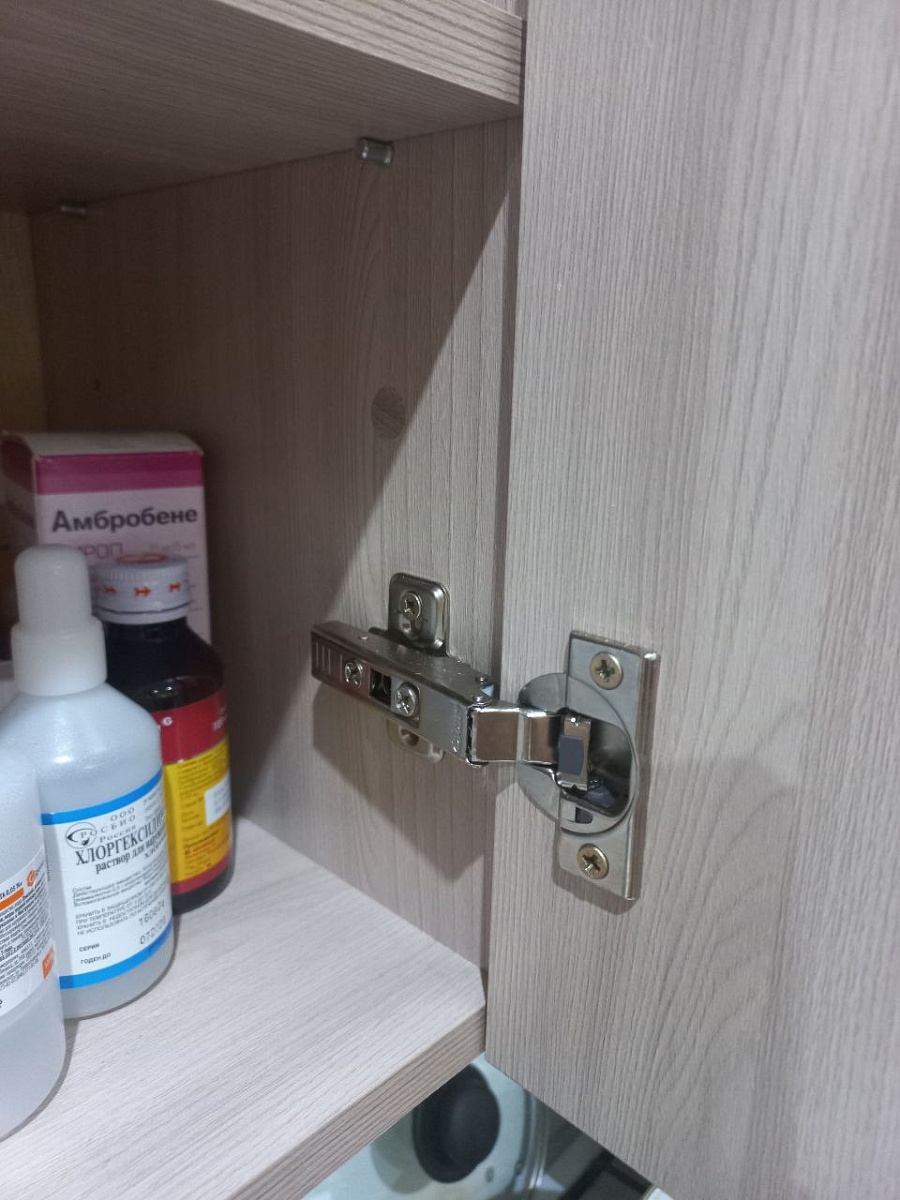 Хорошее изделие, выполнено качественно, петли с доводчиком работают как полагается, неприятного запаха от мебели не было, держится надежно.