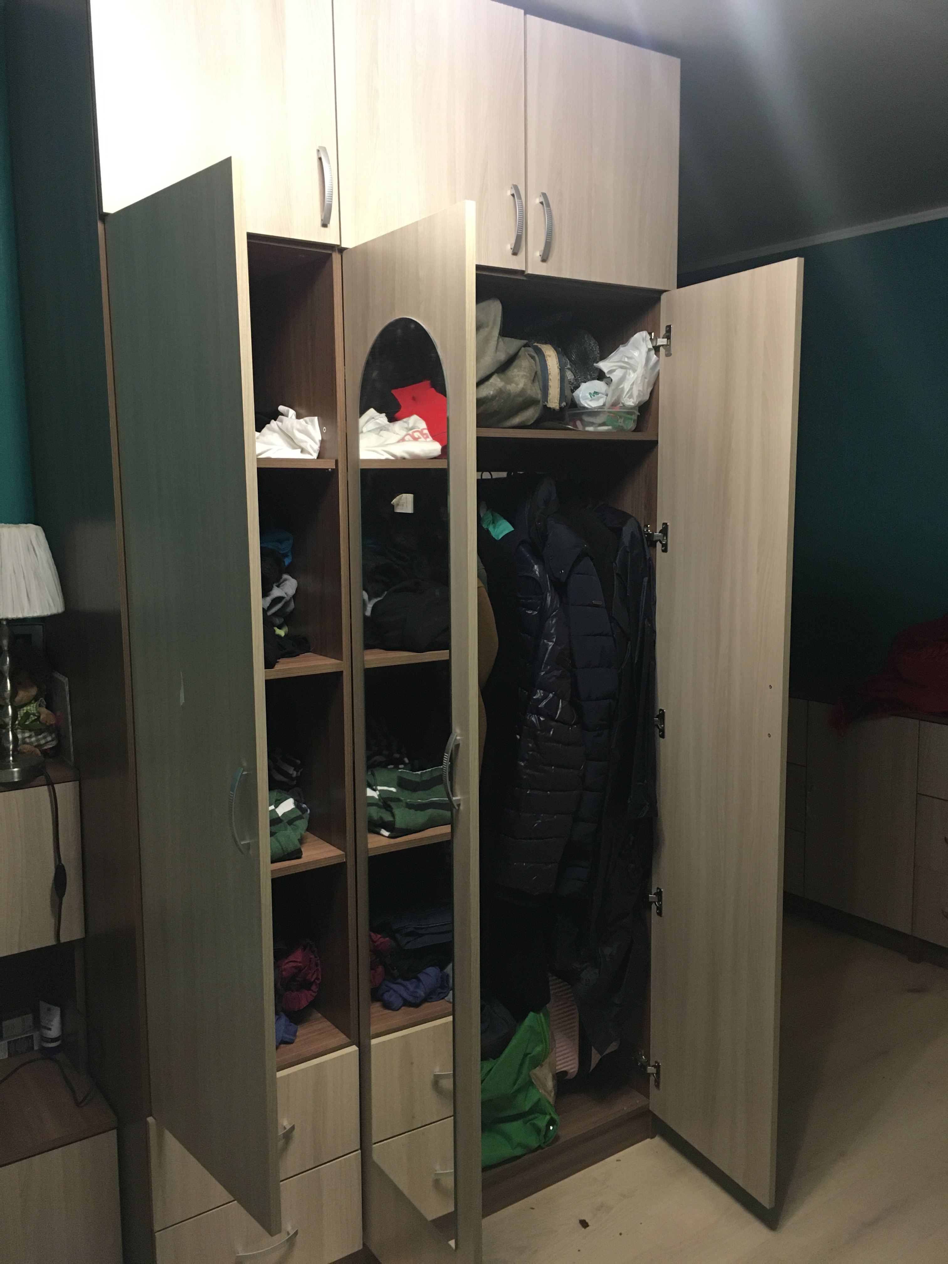 Я заказала в светлом тоне, это Ясень Шимо светлый. Шкаф прелесть! Ничего подобного за такую сумму я не нашла в других магазинах. Четыре дверцы, четыре разных отделения под одежду, зеркала, глубина да и высота не маленькая. Сама себе завидую. Знакомые не верят. Спасибо всем огромное за эту радость и великолепие.