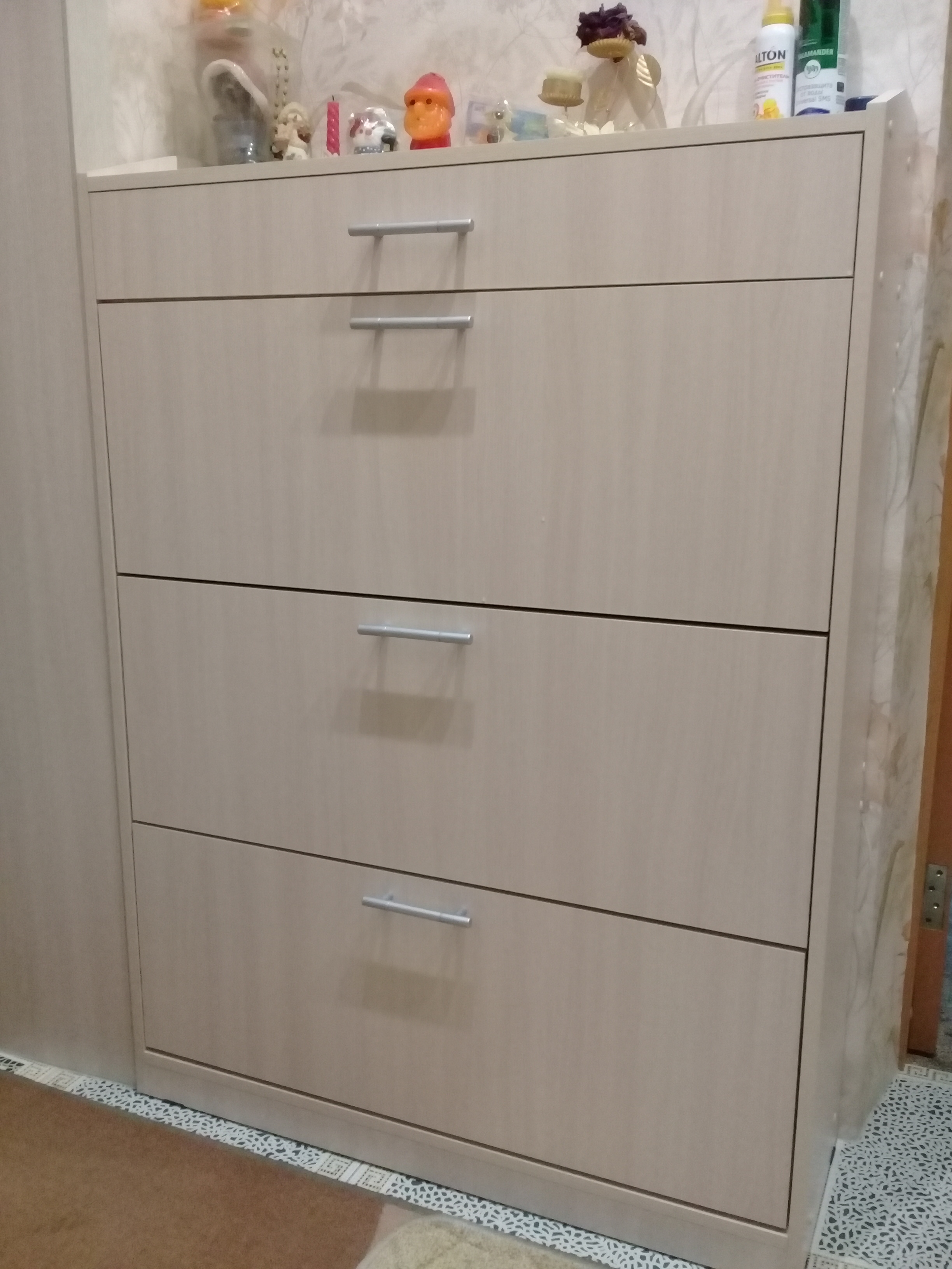 Выбирали галошницу по внешнему виду, вместительности и размерам. Принципиальны были: цвет, ящик для перчаток и бортик (что бы ничего не падало) сверху, и нестандартный размер (мы заказали в размере 900х1250х300). Все заявленые условия смогли выполнить только в компании Bestmebelshop. Галошницу используем 3 месяца. В каждый отсек помещается примерно 10 пар обуви, зимней и больших размеров до 5 пар. Если сделать галошницу 3.1 BMS повыше на 10см, то помещалось бы зимней (большого размера) обуви больше в отсек. Очень удобный и красивый бортик сверху - ничего не падает. Удобно, что можно выбрать любой цвет, можно отдельно корпуса, отдельно фасадов. Мы выбрали цвет молочный дуб и наша галошница идеально вписалась в интерьер. Удобный ящик для перчаток. Оптимальное соотношение цена-качество! Компания Bestmebelshop выполнила все свои обязательства по производству нашего заказа (00000226211): качественные материалы и фурнитура, доставка в срок. Собирали сами-всего хватило. Очень довольны! Сейчас ждём, когда привезут наш новый заказ!
