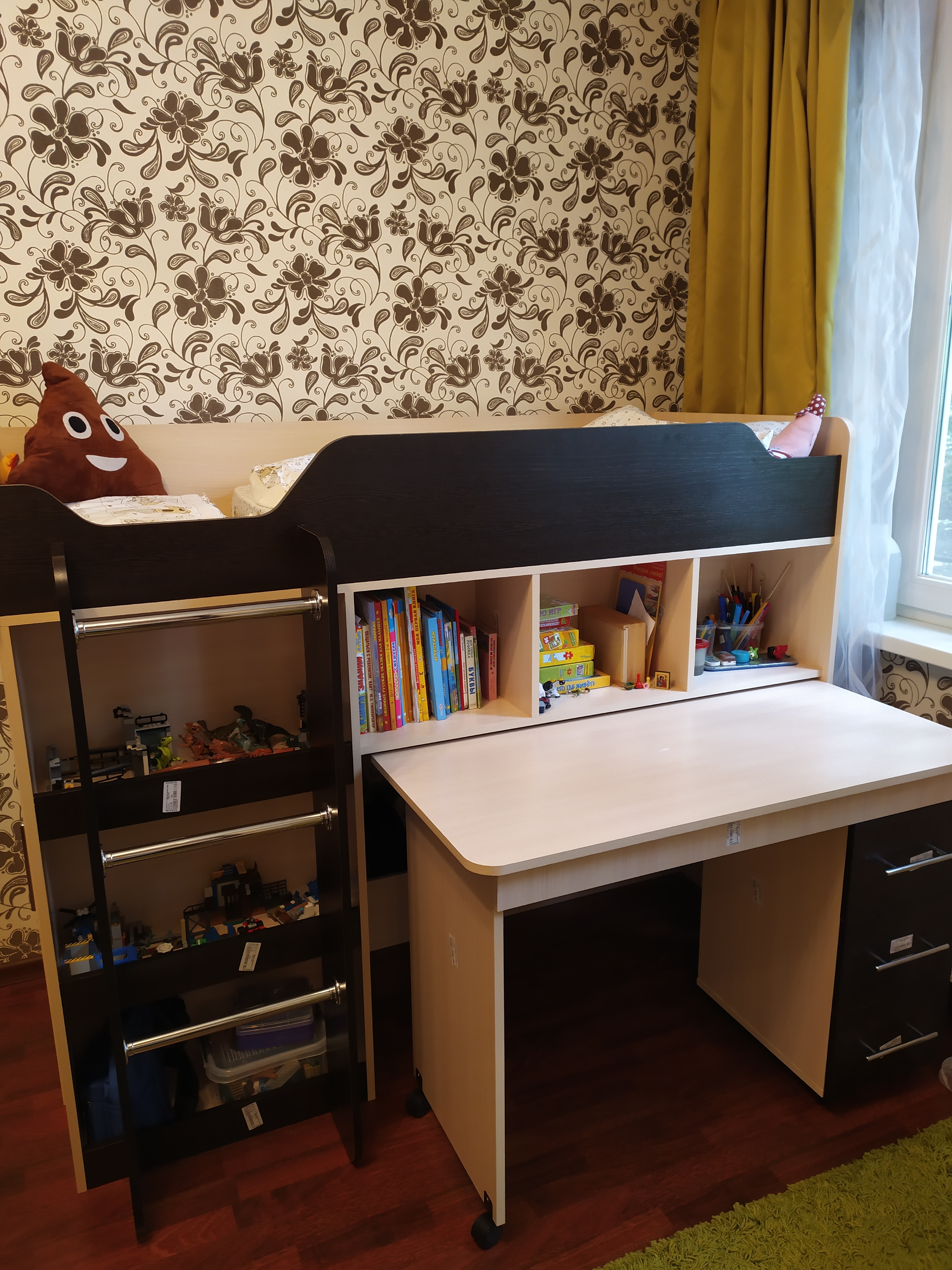 Кровать отличная,сын доволен,понравилось, что в ней много полезного пространства(много полочек,боковой шкаф огромный для игрушек)стол рабочий для занятий,который задвигается под кровать и это очень экономит место в комнате,чем если бы стояла отдельно кровать,отдельно на стене полки, и отдельно стол,который уже никуда не спрячешь.А здесь все так компактно,мы очень довольны.Еще один огромный плюс, что здесь любую мебель можно сделать по своим размерам и в нужном цвете-это круто!спасибо